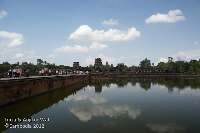 朝著人龍的方向快步進城,將會發現大家都集中在池塘前,就是為了拍小吳哥城的塔身(俗稱鳳梨頭@@")及其倒影
